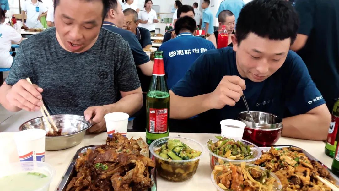 在員工餐廳,大家齊聚一堂,圍桌而坐,時(shí)而三倆交流,時(shí)而舉杯慶祝,時(shí)而專注美食,到處洋溢著一種歡樂的氛圍。肉質(zhì)鮮美的羊肉、營(yíng)養(yǎng)豐富的羊雜湯、精致可口的小菜、清爽新鮮的水果、清涼的飲品讓大家的幸福感油然而生。
