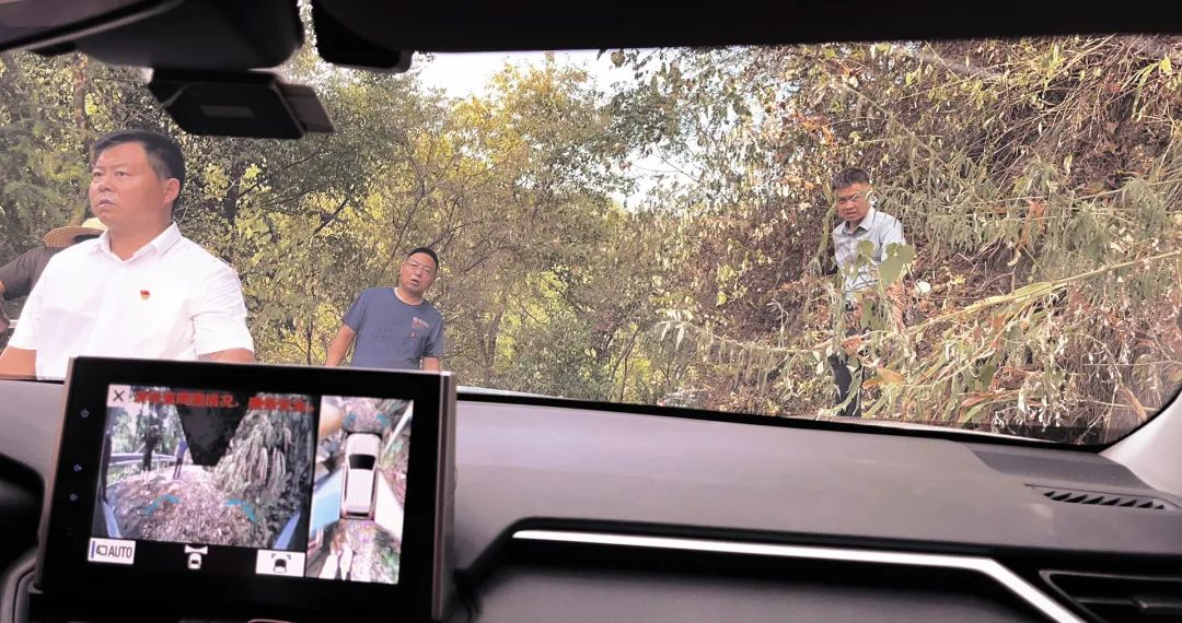 ▲由于探訪的路崎嶇、窄小,車輛需要多人指引調(diào)整前行