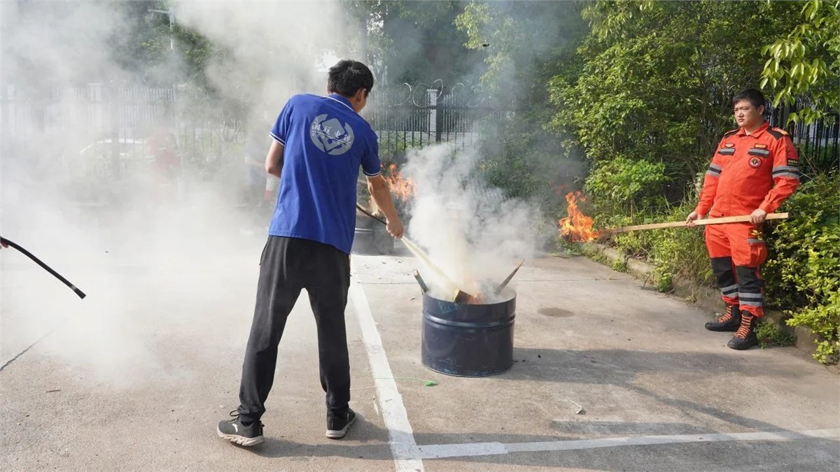 隨著一陣急促的警報聲響起,消防實戰演練正式拉開帷幕。模擬火災場景迅速在公司辦公樓、生產車間等區域“燃起”,現場“濃煙滾滾”。員工們迅速響應,按照預定的疏散路線有序撤離。整個疏散過程緊張而有序,在短短幾分鐘內,全體員工成功疏散至公司指定的安全集合點。